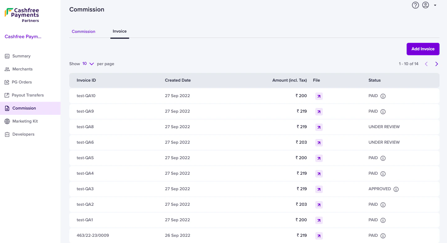 | Under Review | The invoice status is yet to be verified by Cashfree Payments. |