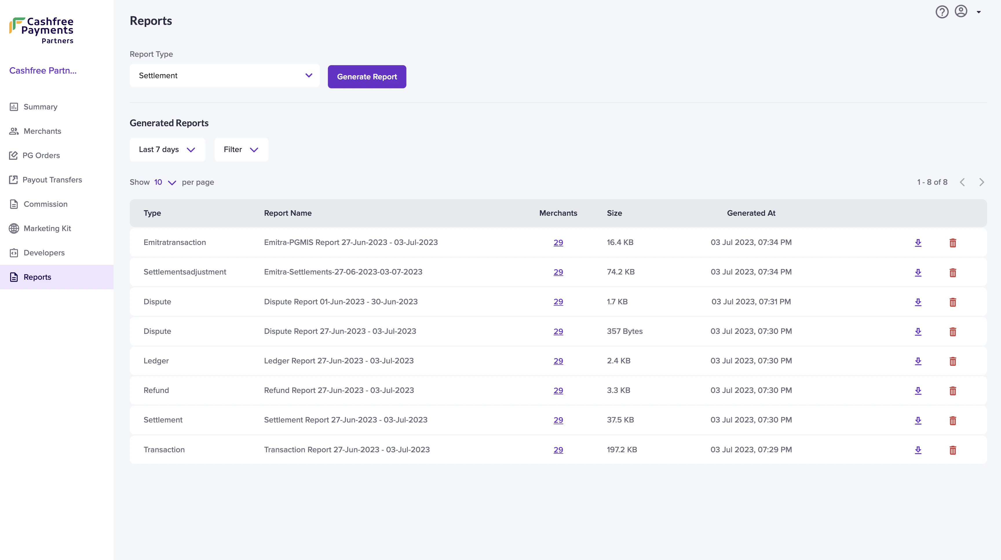 - Go to Embedded Payment Dashboard > Reports. Choose the required report from the Report Type drop-down and click Generate Report. You can also apply filter and view reports as per your requirement.