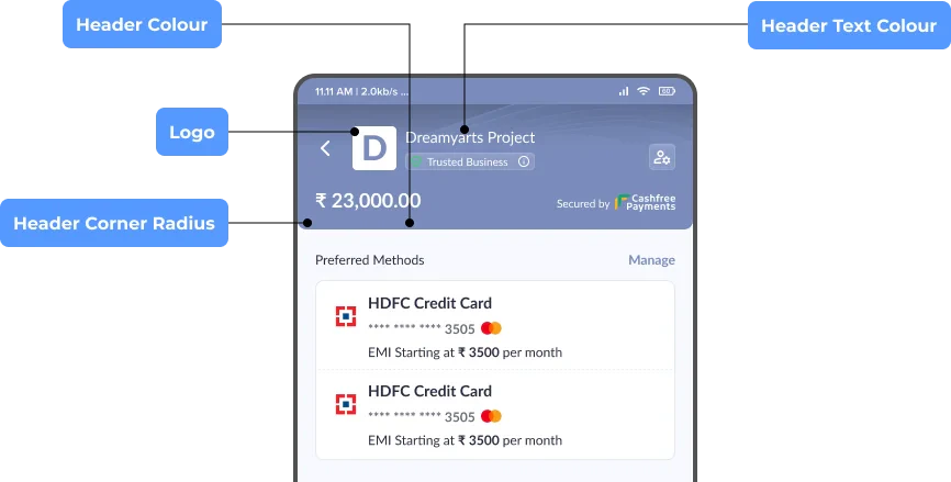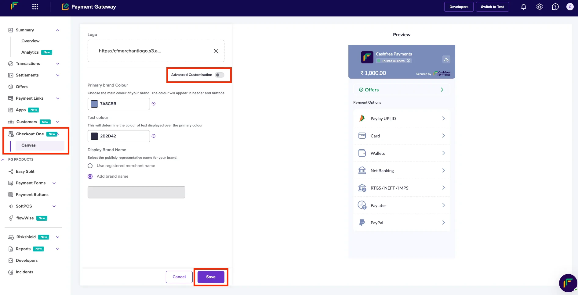 The Canvas branding dashboard aims to enable you to customise every visual detail of all the components present in the checkout page to make it look like a true extension of your own platform. This helps in instilling trust in customers regarding the authenticity of the checkout page and makes the visual transition from your platform to checkout much smoother.How to customise the checkout page