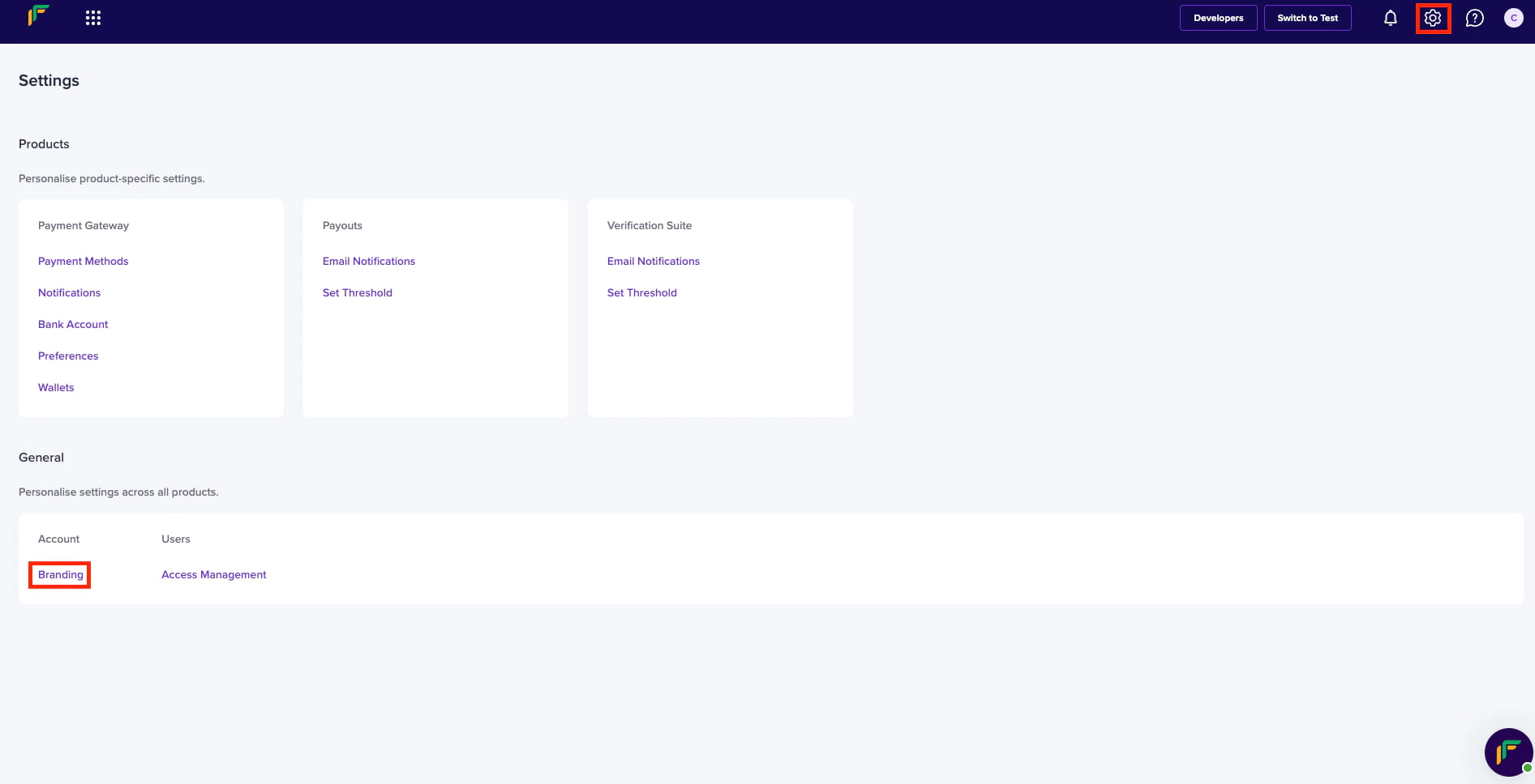 - Navigate to Checkout One > Canvas from the Payment Gateway dashboard, or navigate to Settings > Branding.