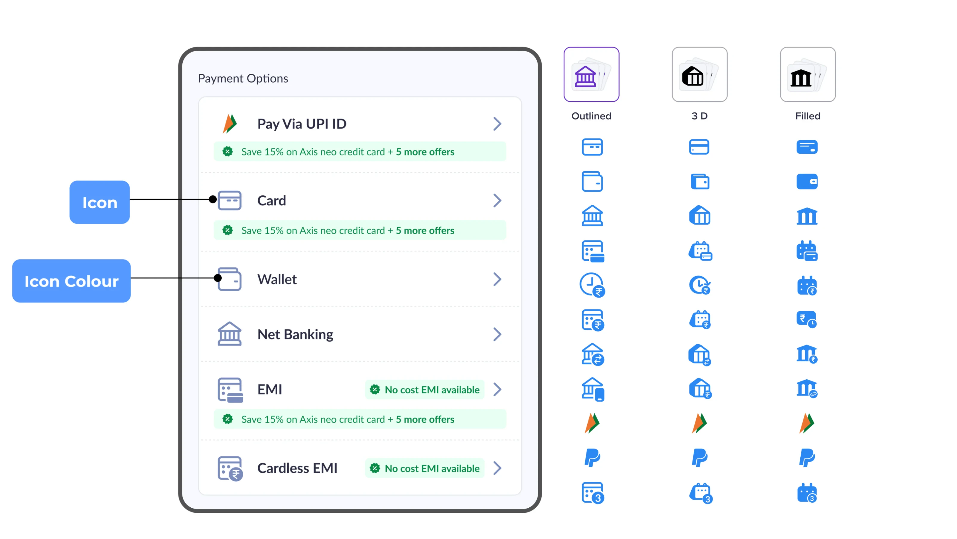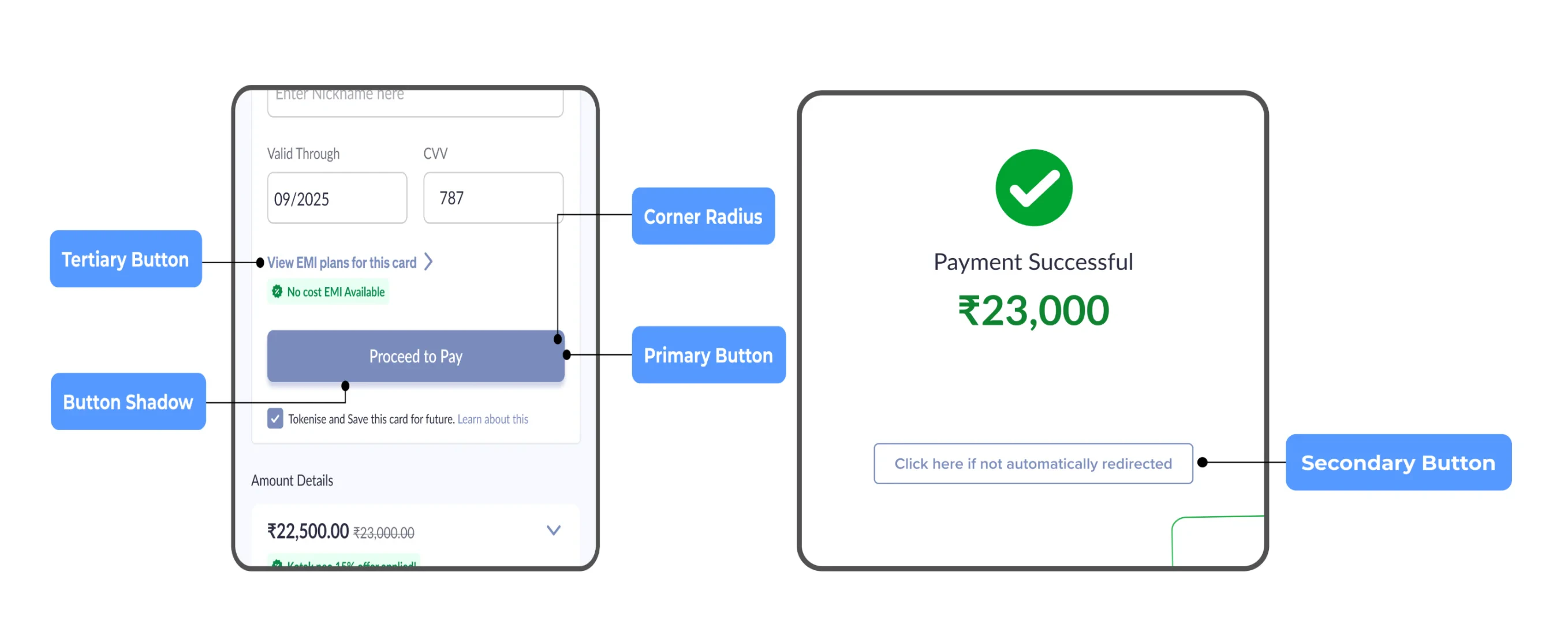 Detailed configuration option allows you to customise checkout to match the exact visual styling of their platformConfigurations available: