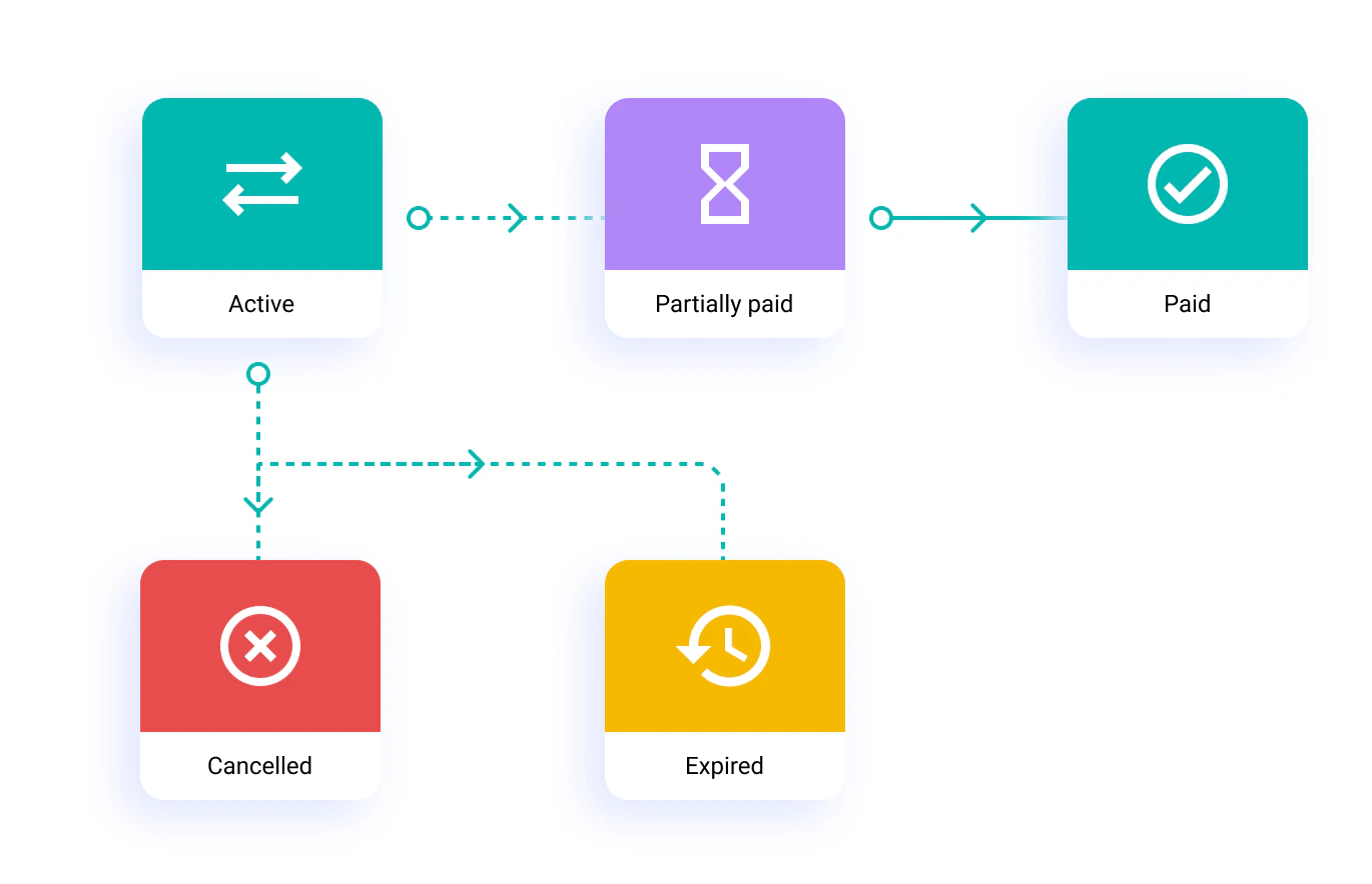 ACTIVE | Default state upon creation. Link is valid and ready to accept payments until cancelled or expired. |