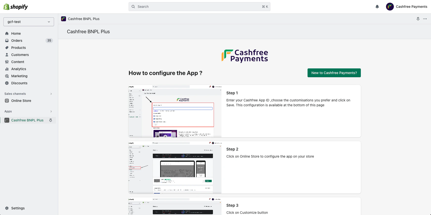 - Click on Apps> App Name. Configure the App by providing your Cashfree App ID, and select the required options such as Offers, Pay Later, and EMI. Click Save. You can access the Cashfree App ID from the Developers section. Read more to know more about API keys.