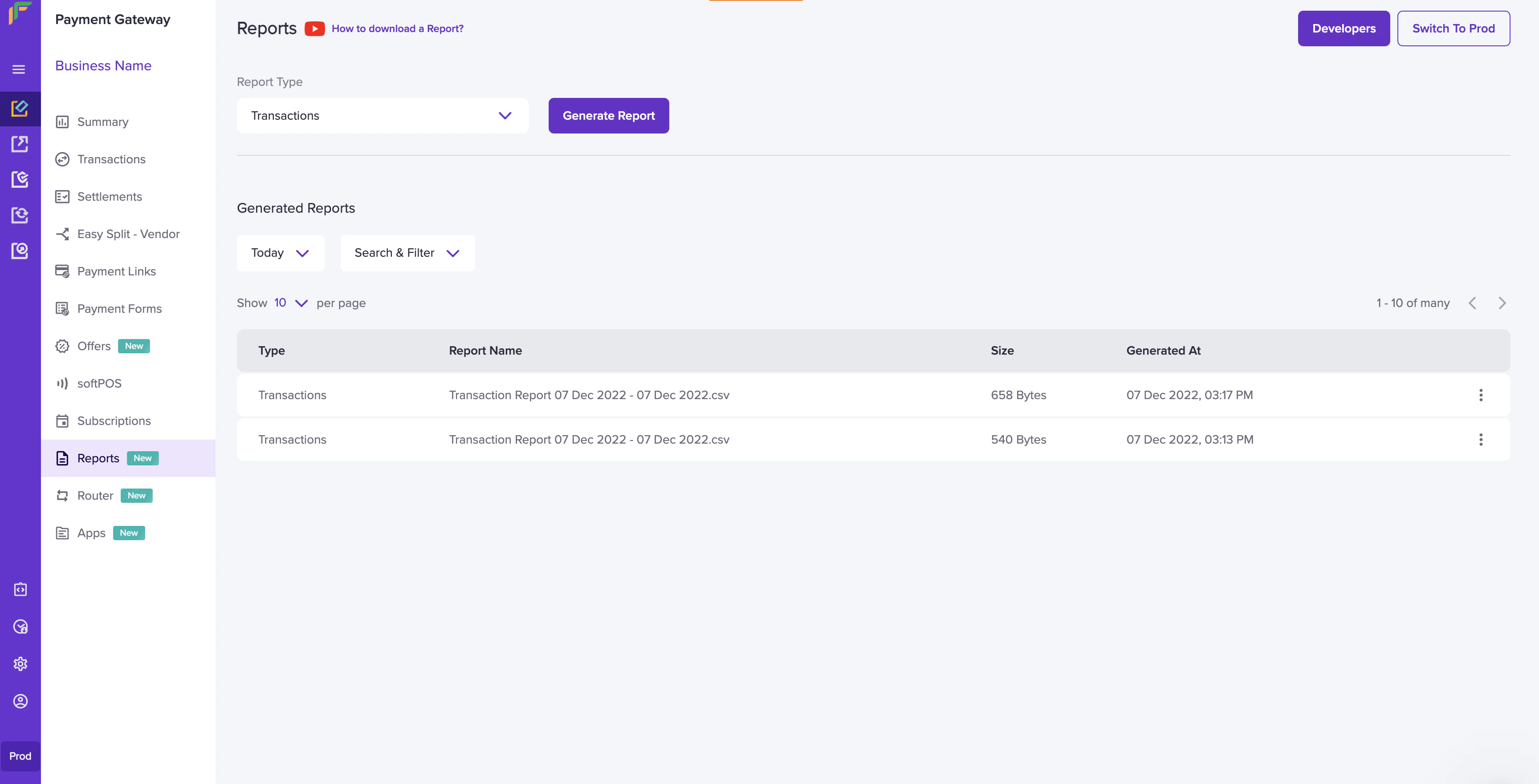 - Go to Payment Gateway Dashboard > Reports.