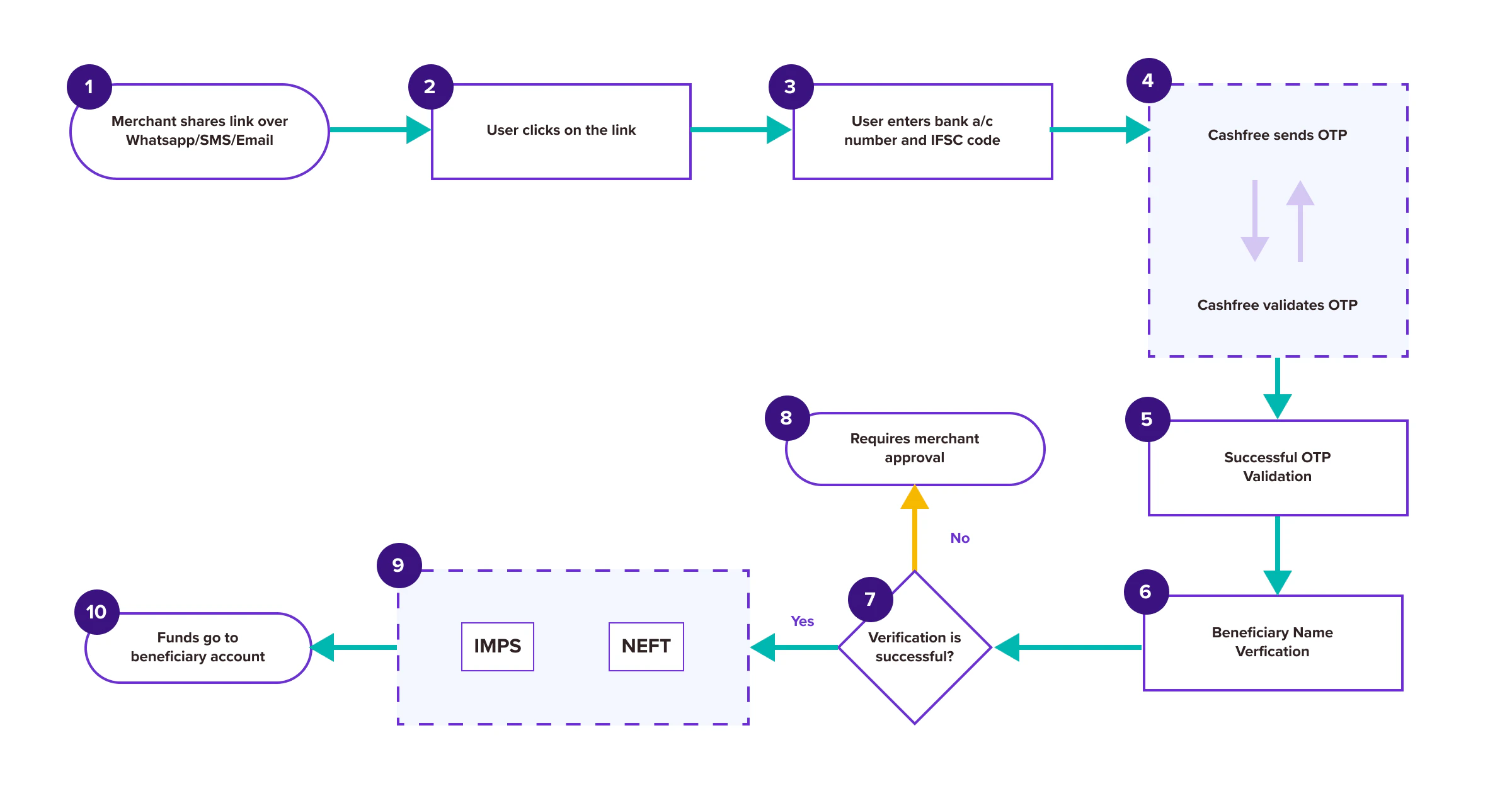 - Create Cashgram with the option Enable Bank Account Verification enabled. Share the link with the intended beneficiary over WhatsApp/SMS/email.