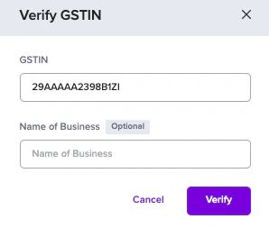 - Go to Verification Suite Dashboard > GSTIN > click Verify GSTIN.